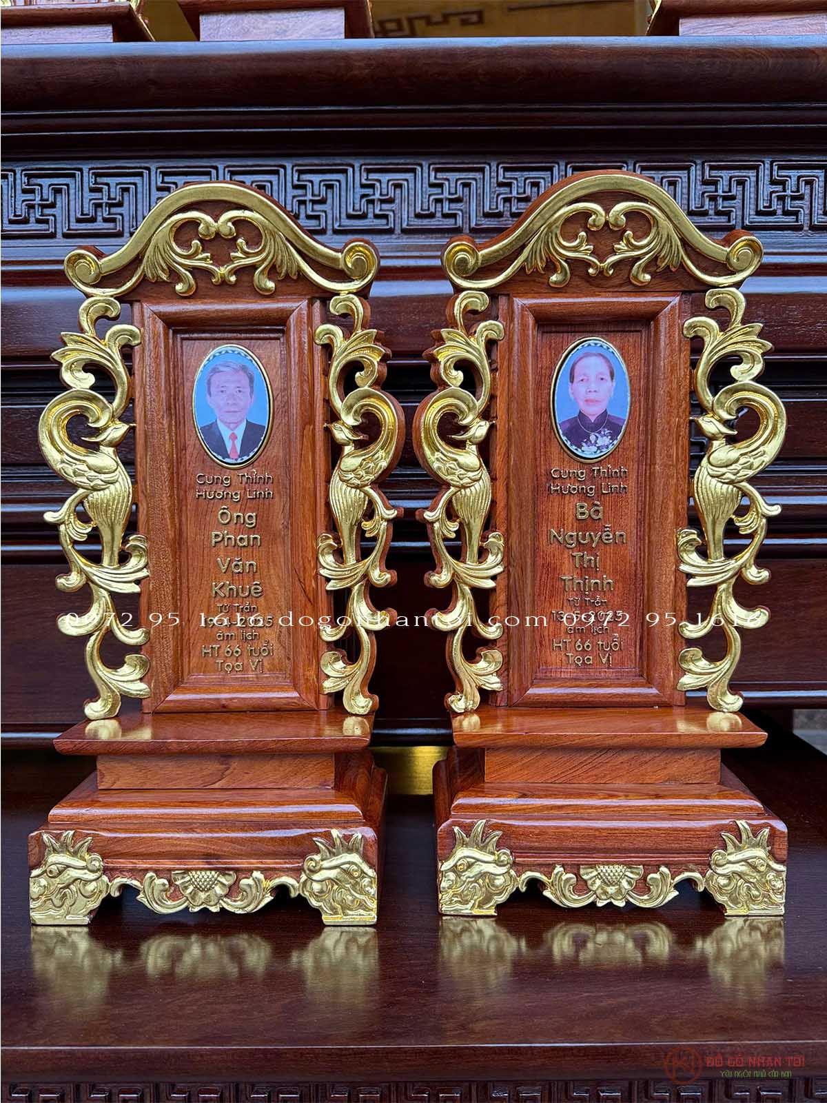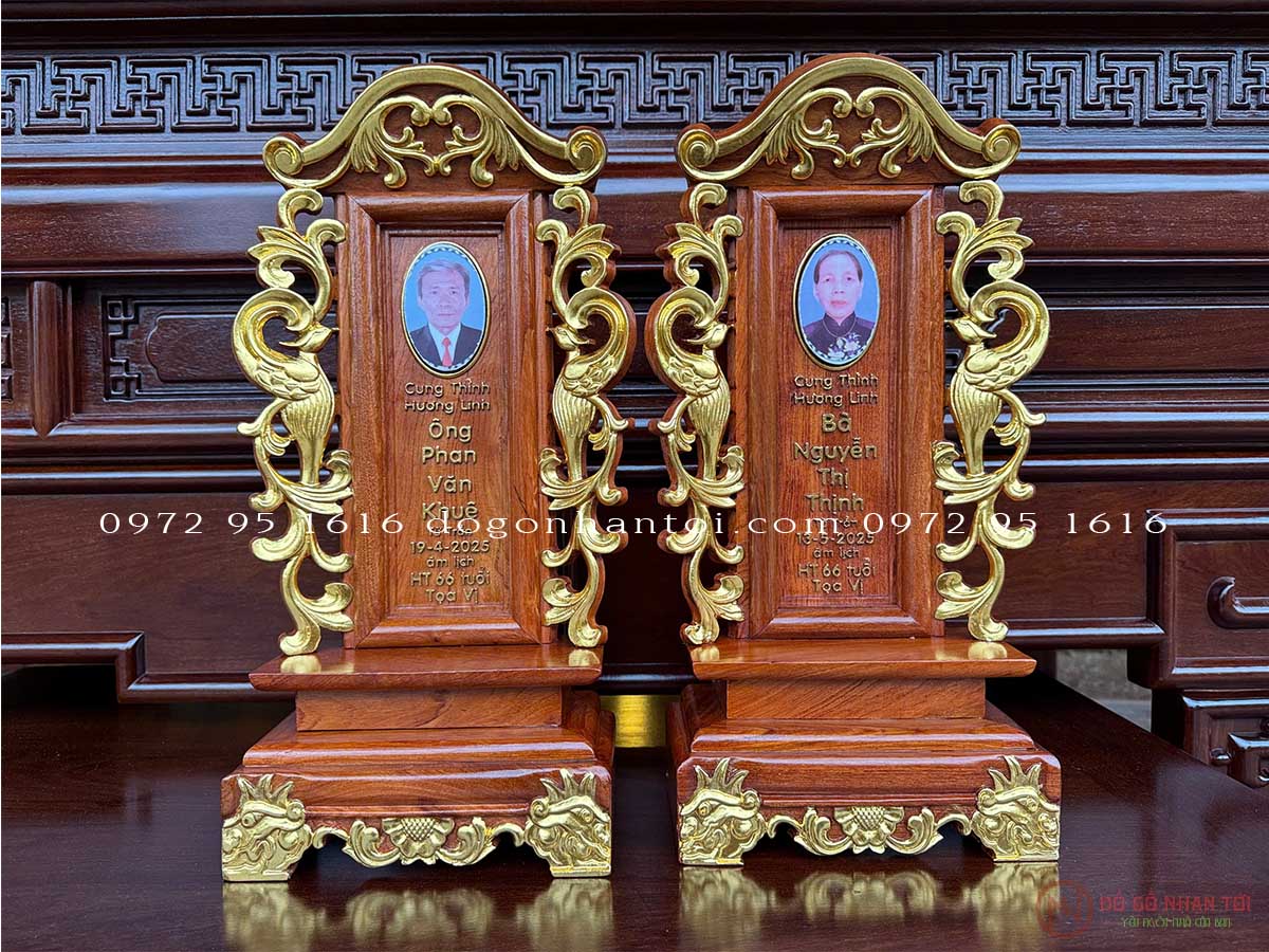Trung tâm Đồ gỗ Nhạn Tới xin giới thiệu khách hàng Bài Vị Mẫu Song Long Gỗ Hương Đá