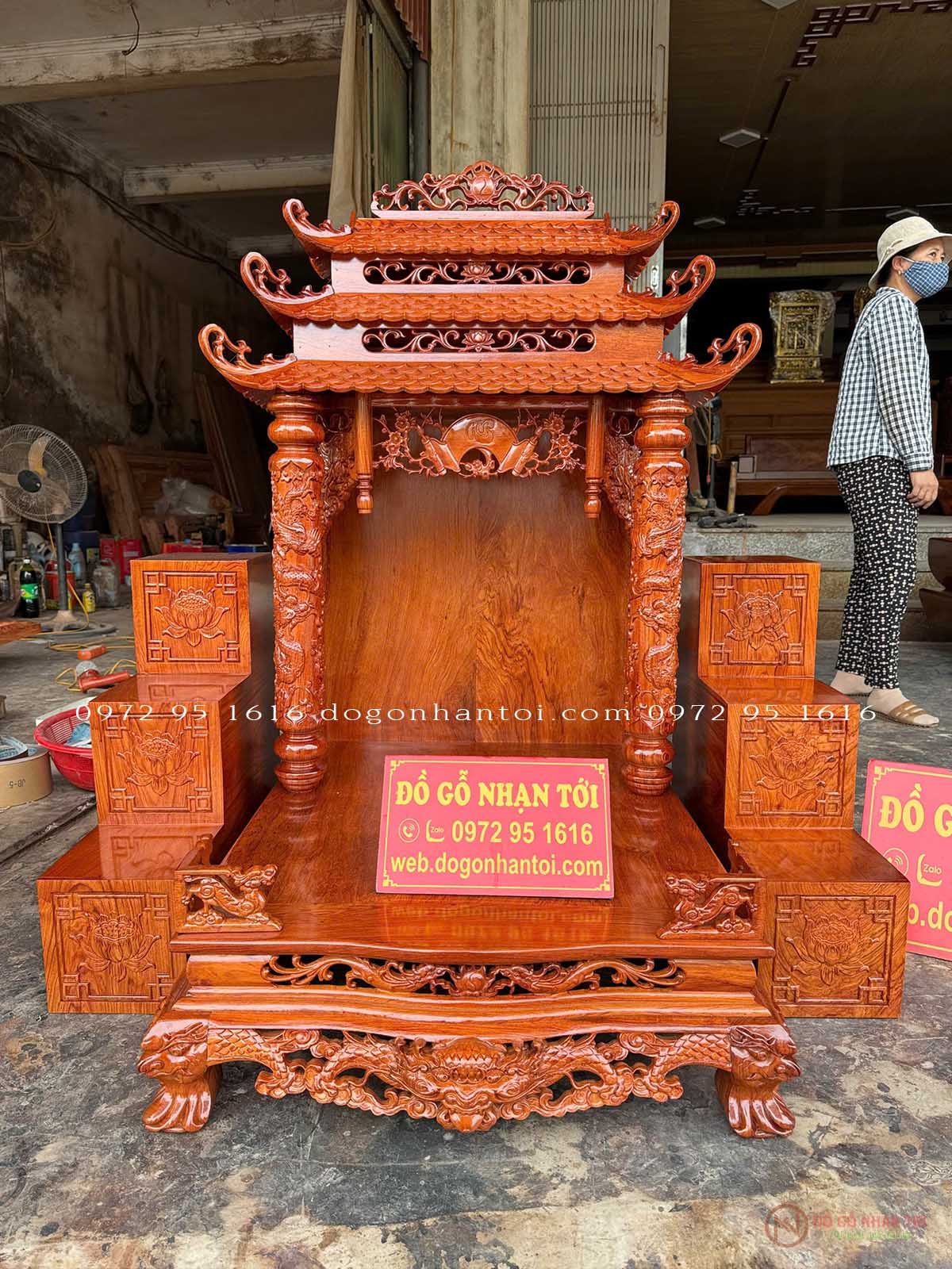 Hình ảnh chi tiết của sản phẩm Bàn Thờ Thần Tài Gỗ Hương Đá Mẫu Ba Mái