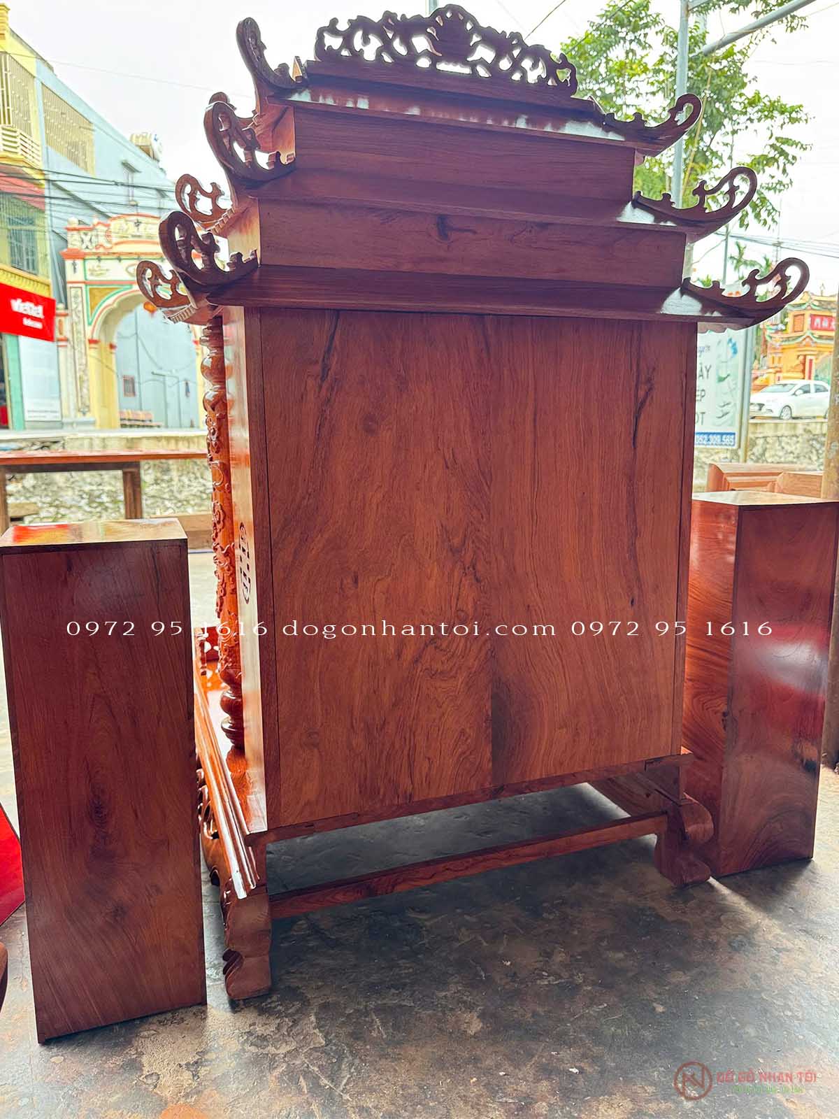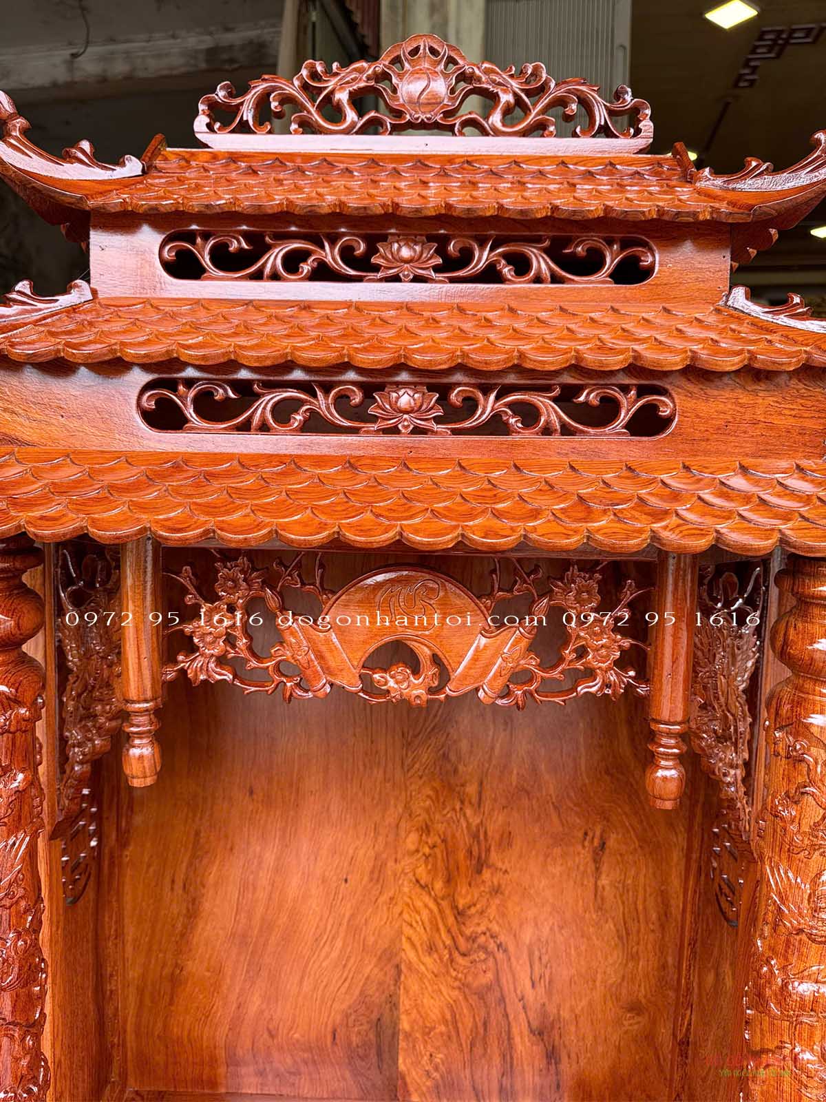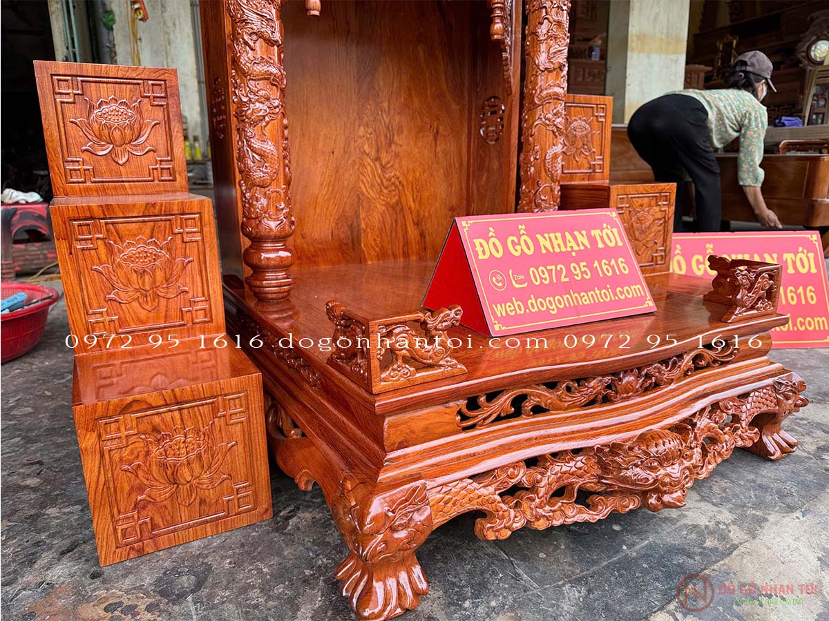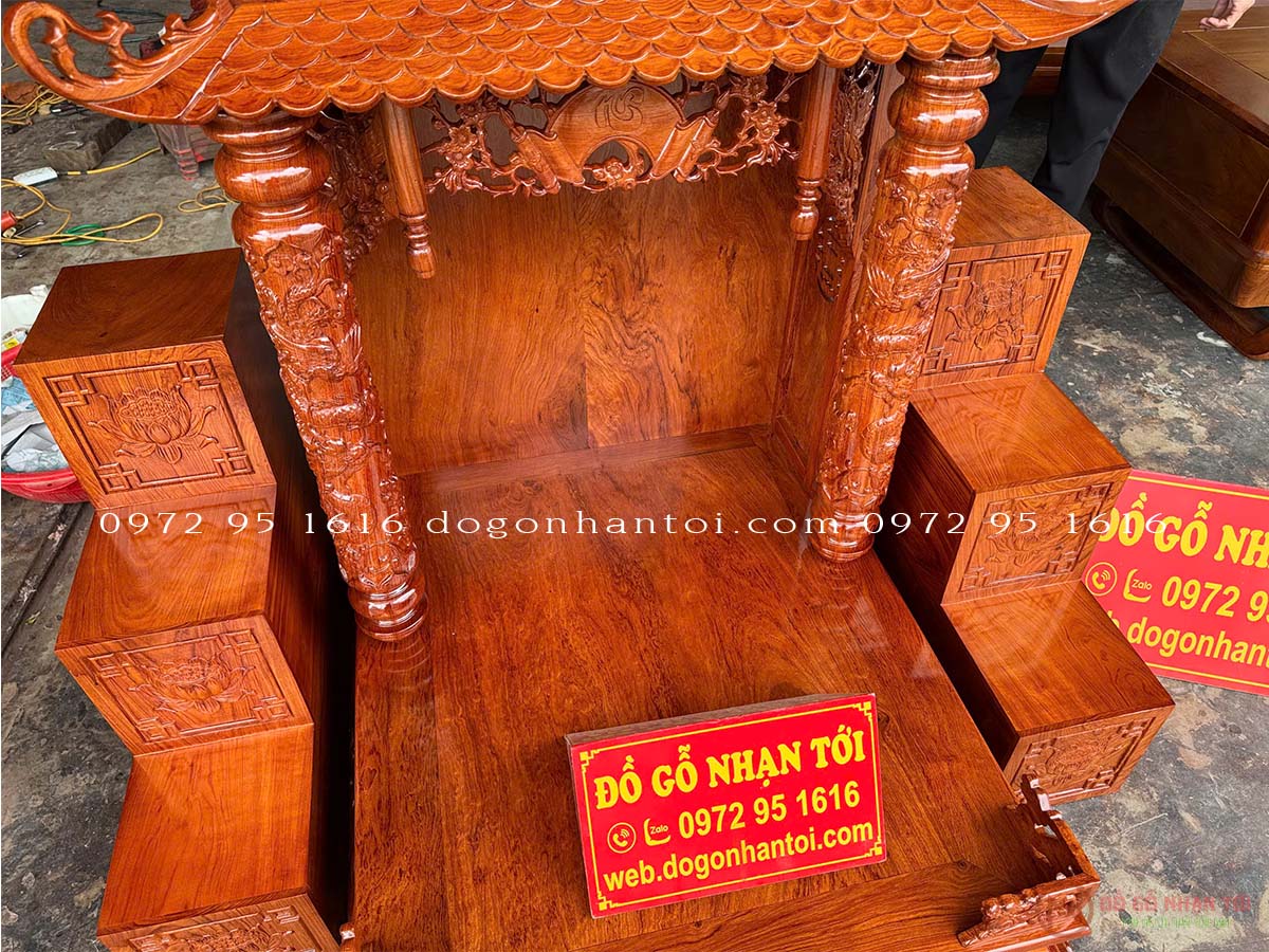 Hình ảnh chi tiết của sản phẩm Bàn Thờ Thần Tài Gỗ Hương Đá Mẫu Ba Mái