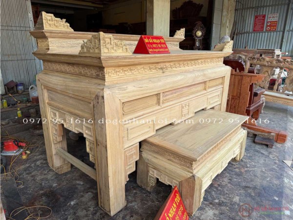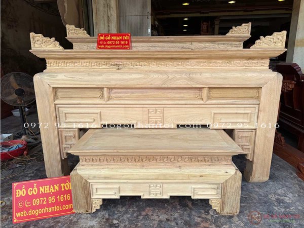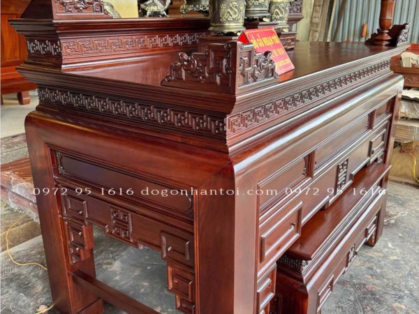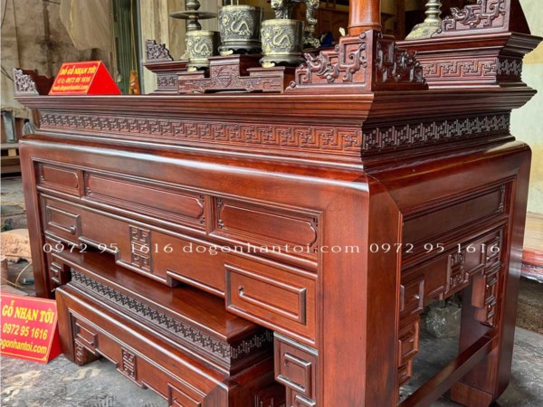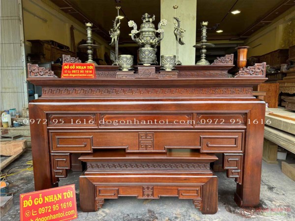 Hình ảnh chi tiết của sản phẩm Ban Thờ Triện Thọ Nhị Cấp Gỗ Gụ