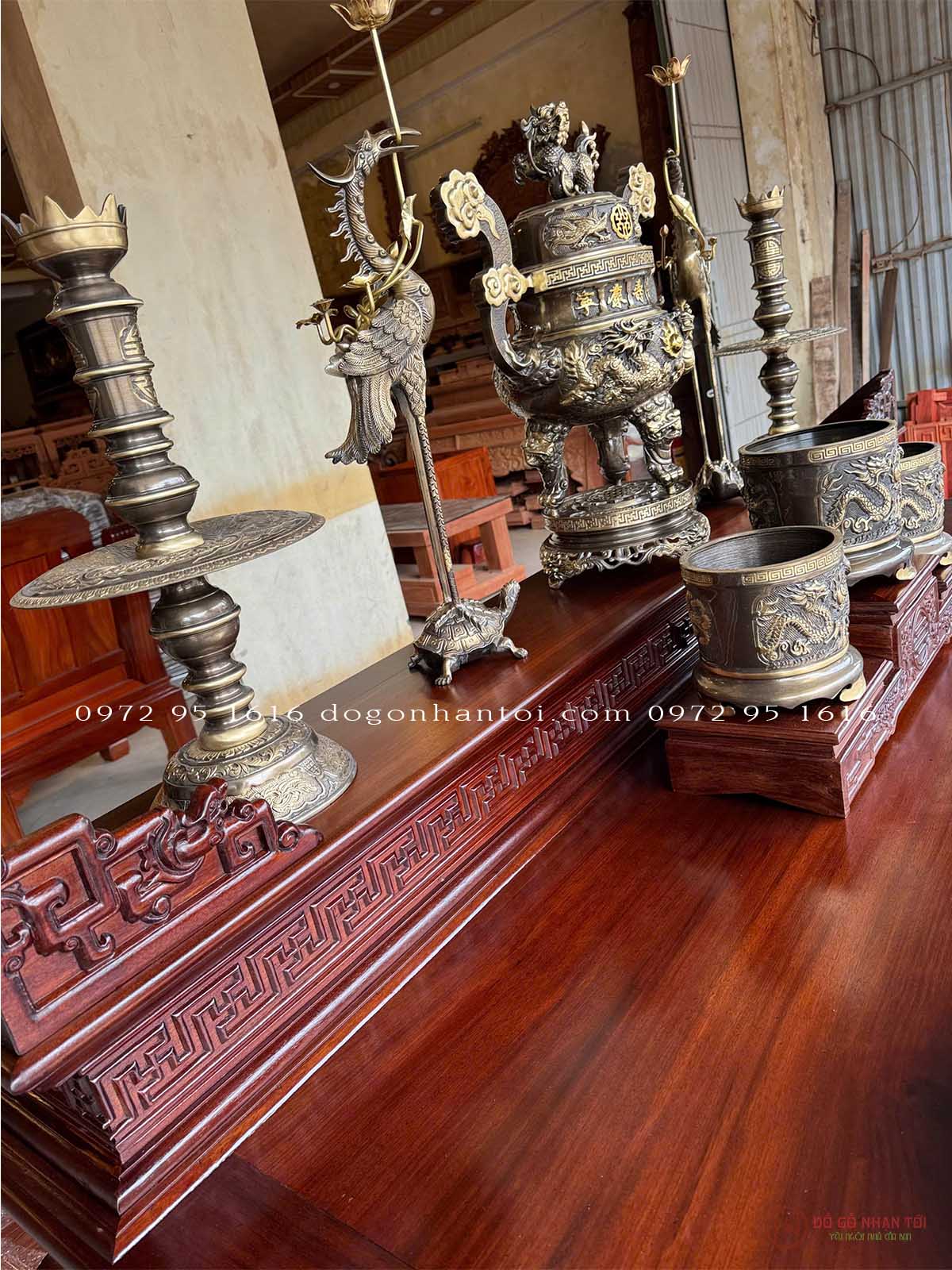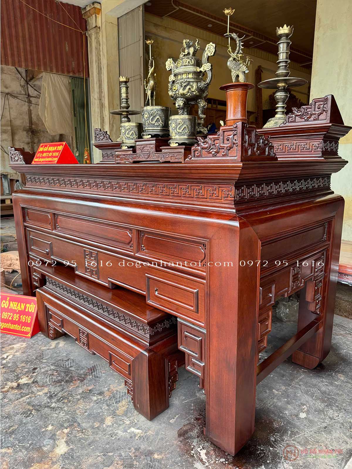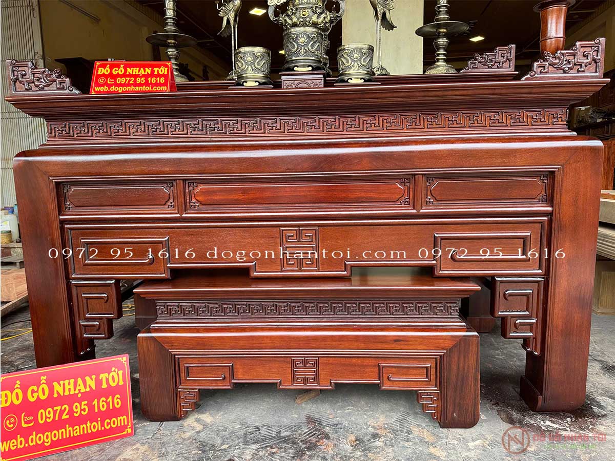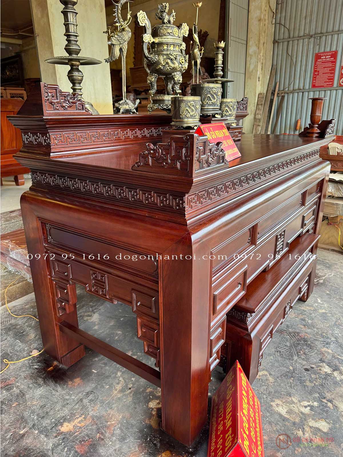 Hình ảnh chi tiết của sản phẩm Ban Thờ Triện Thọ Nhị Cấp Gỗ Gụ