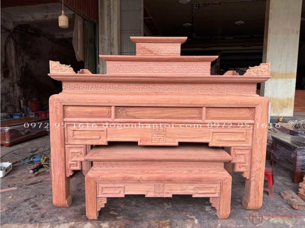 Trung tâm Đồ gỗ Nhạn Tới xin giới thiệu khách hàng Bàn Thờ Triện Thọ Tam Cấp Gỗ Hương Đá