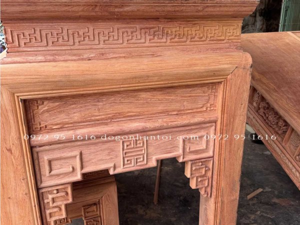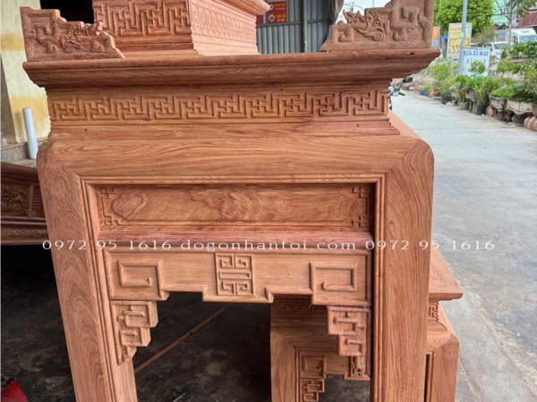 Hình ảnh chi tiết của sản phẩm Bàn Thờ Triện Thọ Tam Cấp Gỗ Hương Đá