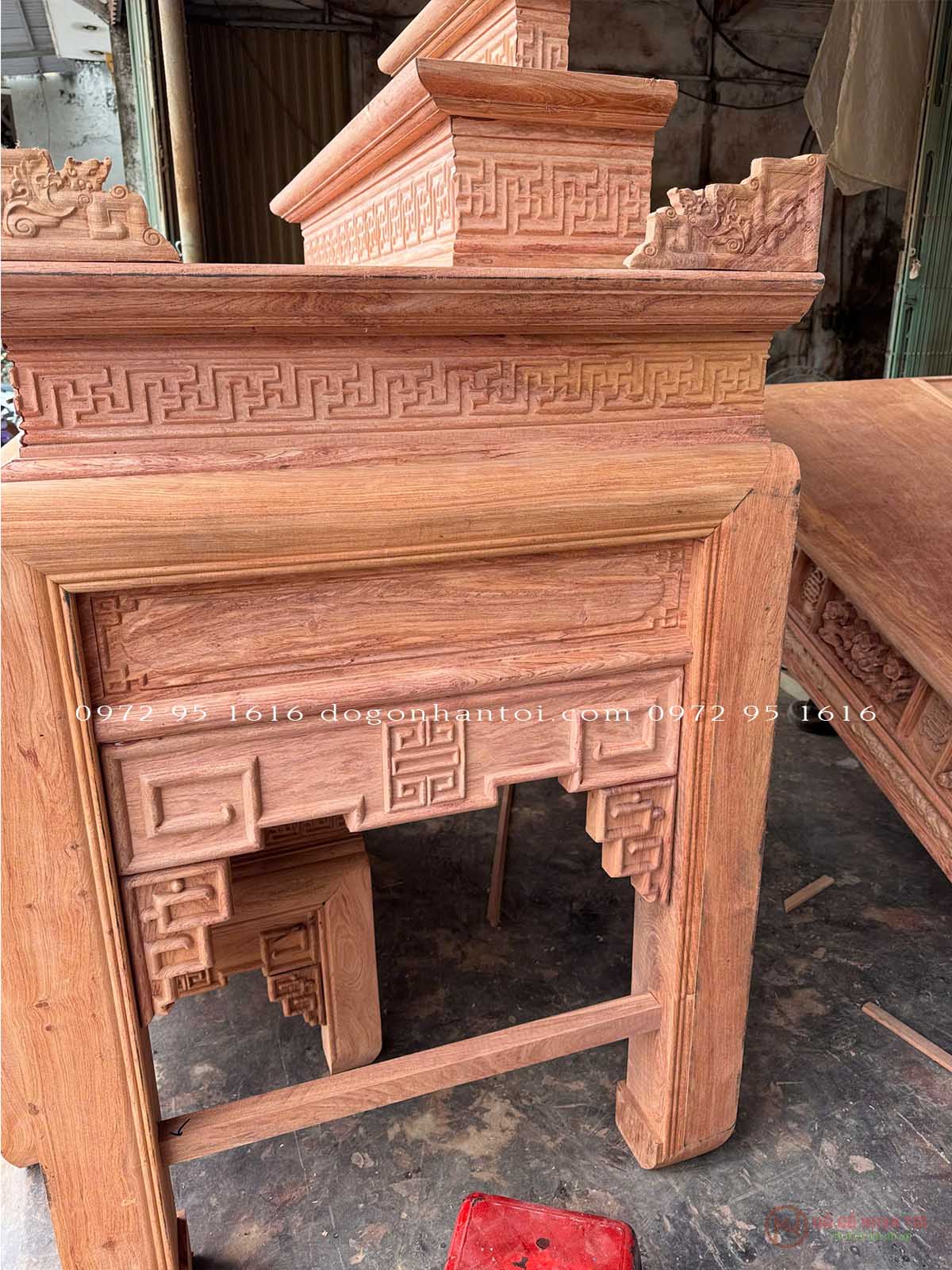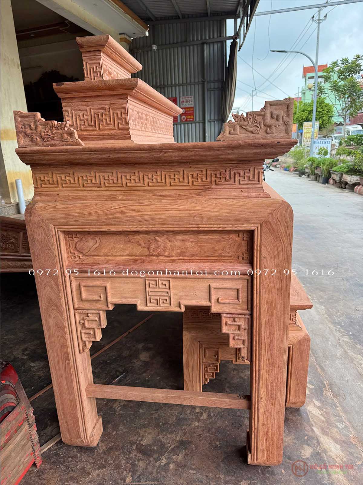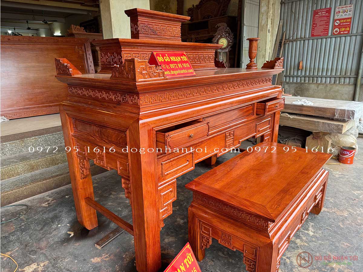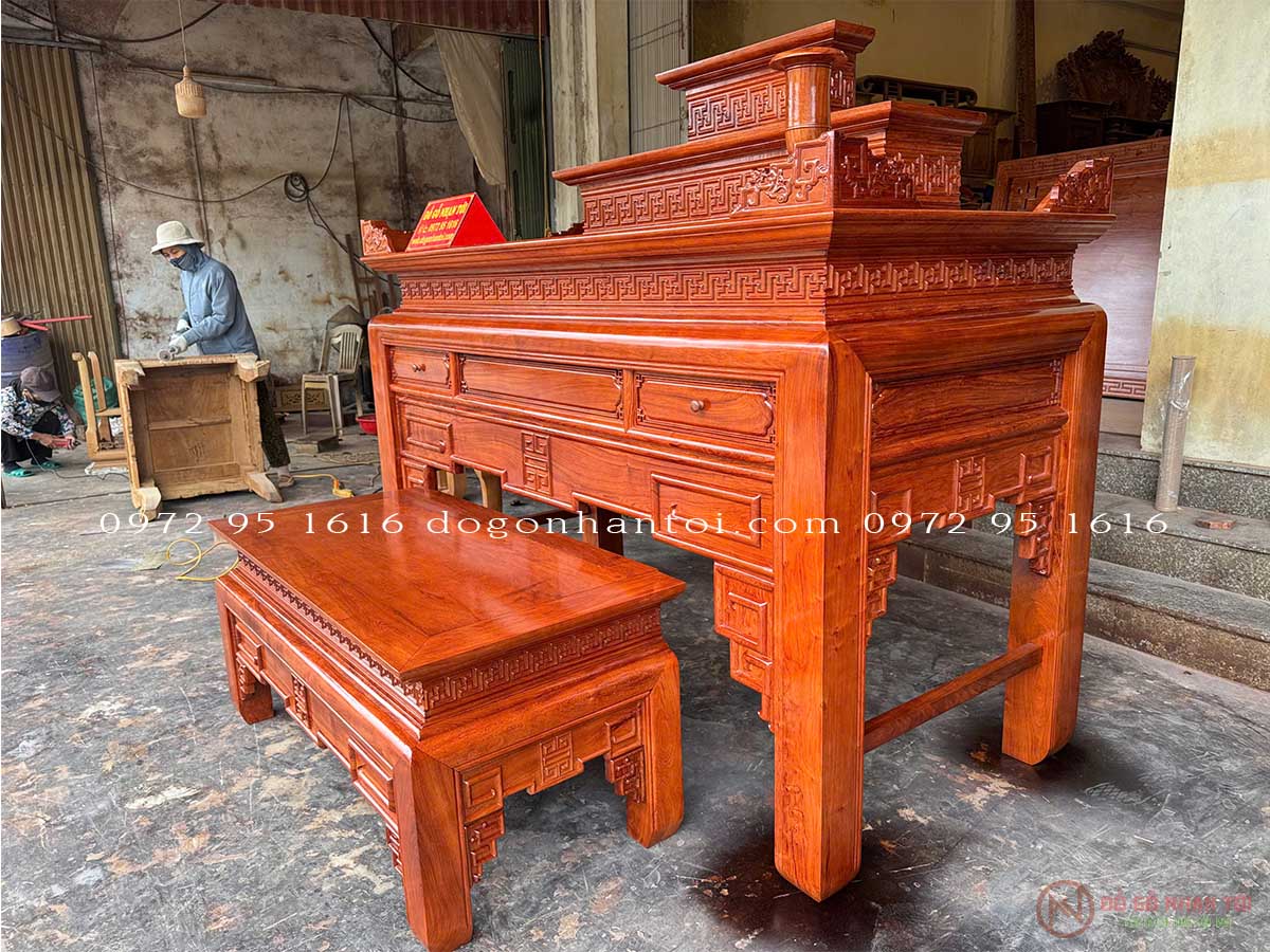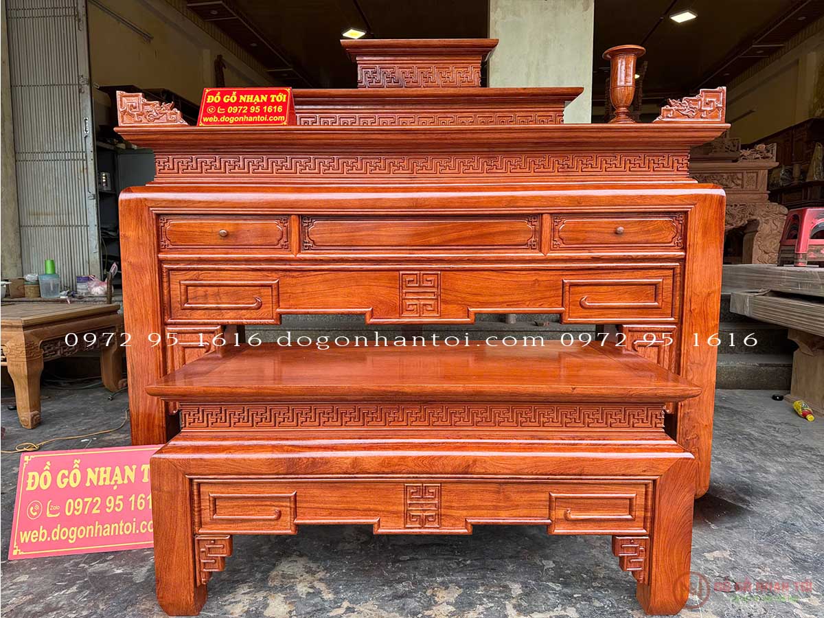 Trung tâm Đồ gỗ Nhạn Tới xin giới thiệu khách hàng Bàn Thờ Triện Thọ Tam Cấp Gỗ Hương Đá