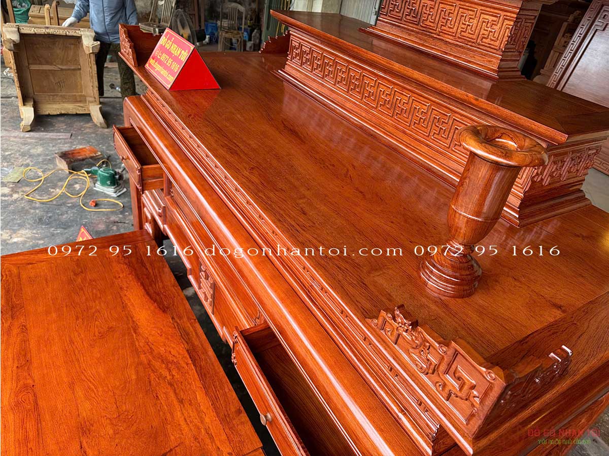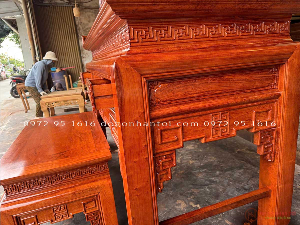 Hình ảnh chi tiết của sản phẩm Bàn Thờ Triện Thọ Tam Cấp Gỗ Hương Đá