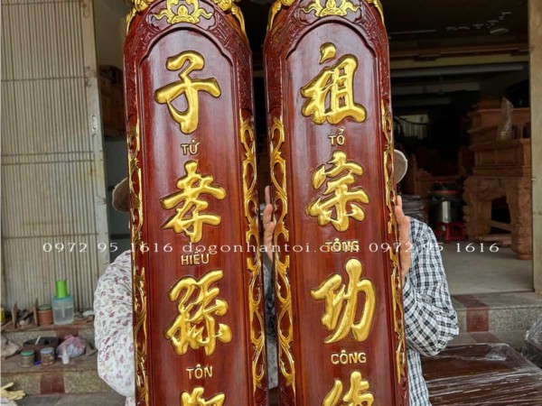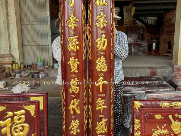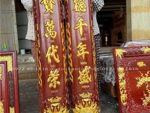 Hình ảnh chi tiết của sản phẩm Đại Tự Câu Đối Lòng Mo Gỗ Hương Đỏ