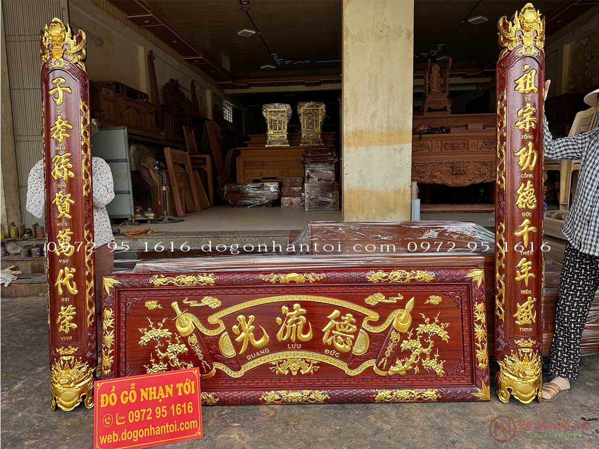 Trung tâm Đồ gỗ Nhạn Tới xin giới thiệu khách hàng Đại Tự Câu Đối Lòng Mo Gỗ Hương Đỏ