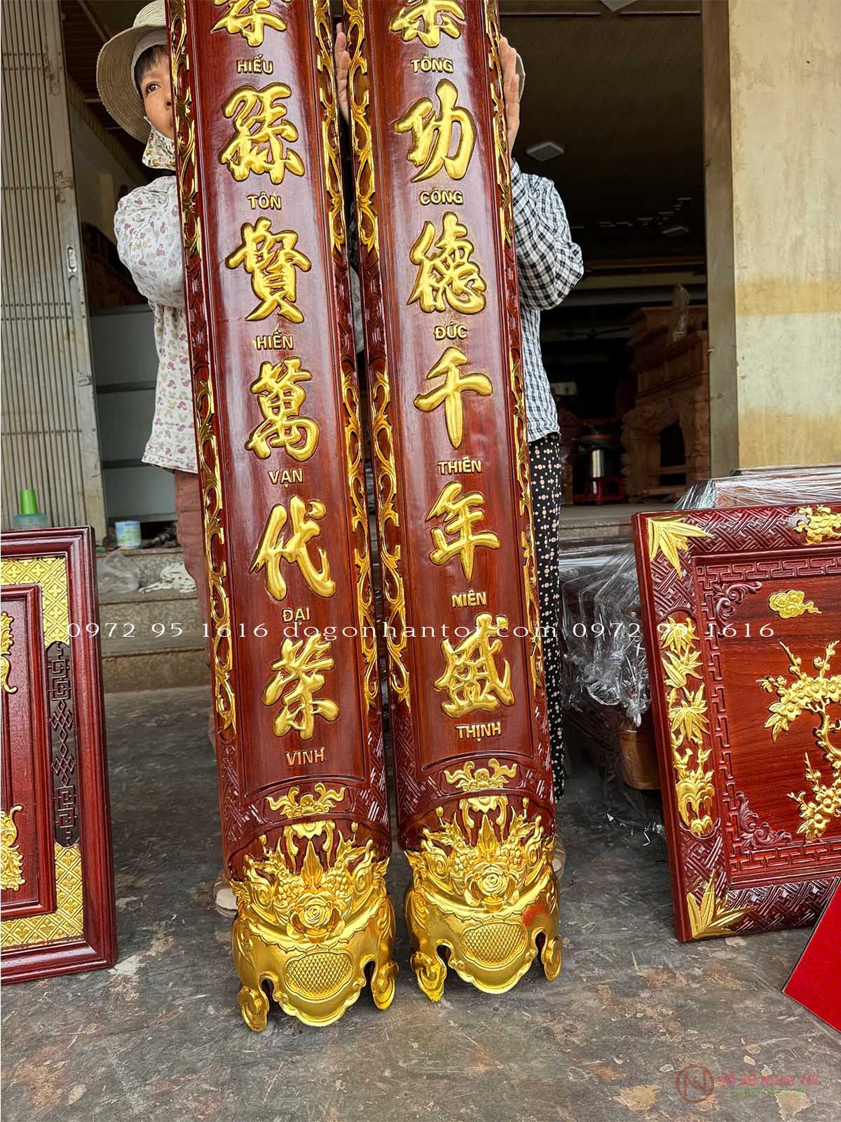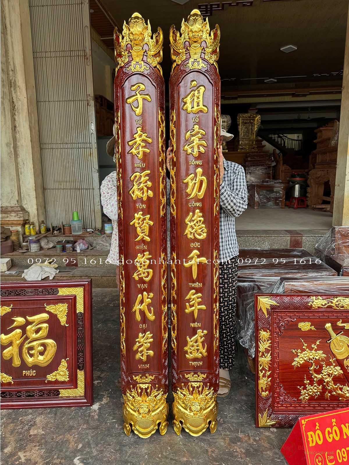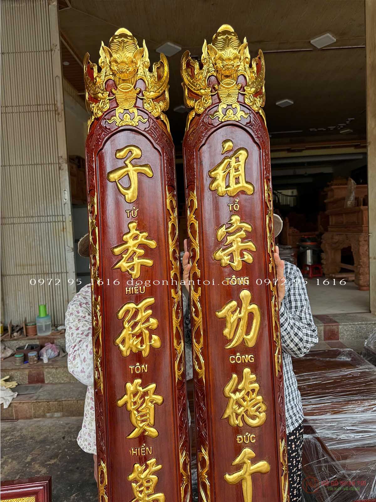 Hình ảnh chi tiết của sản phẩm Đại Tự Câu Đối Lòng Mo Gỗ Hương Đỏ